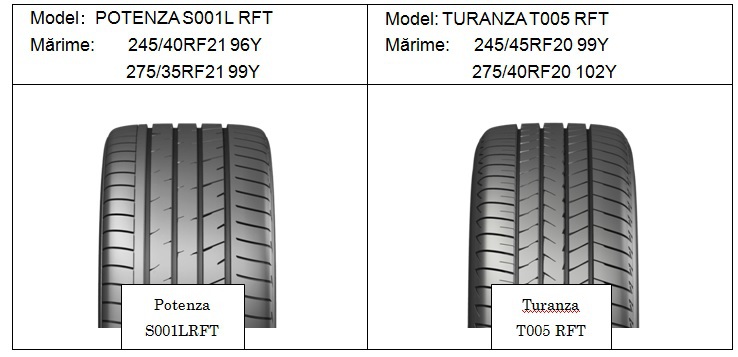 Anvelopele POTENZA S001L RFT şi TURANZA T005 RFT au fost proiectate de către Bridgestone exclusiv pentru LEXUS LC500/LC500h, astfel încât acest autovehicul să atingă performanţe superioare. Acestea oferă conducătorului auto un control fiabil asupra autoturismului, asigurând, în acelaşi timp, o experienţă premium a condusului. De asemenea, anvelopele RFT ajută la reducerea greutăţii totale a autovehiculului, eliminând necesitatea roţii de rezervă. Anvelopele RFT proiectate de Bridgestone pot fi utilizate în siguranţă, chiar şi după o pană sau pierderea presiunii, până la 80 km cu o viteză maximă de 80 km/h.