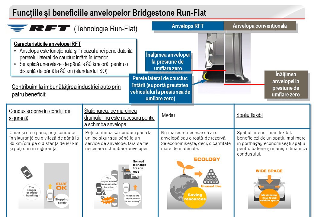 Prin utilizarea la scară largă a anvelopelor RFT, Bridgestone îşi propune să contribuie la construirea unei societăţi mobile, sigure şi stabile, reducând, în acelaşi timp, impactul global asupra mediului înconjurător.
