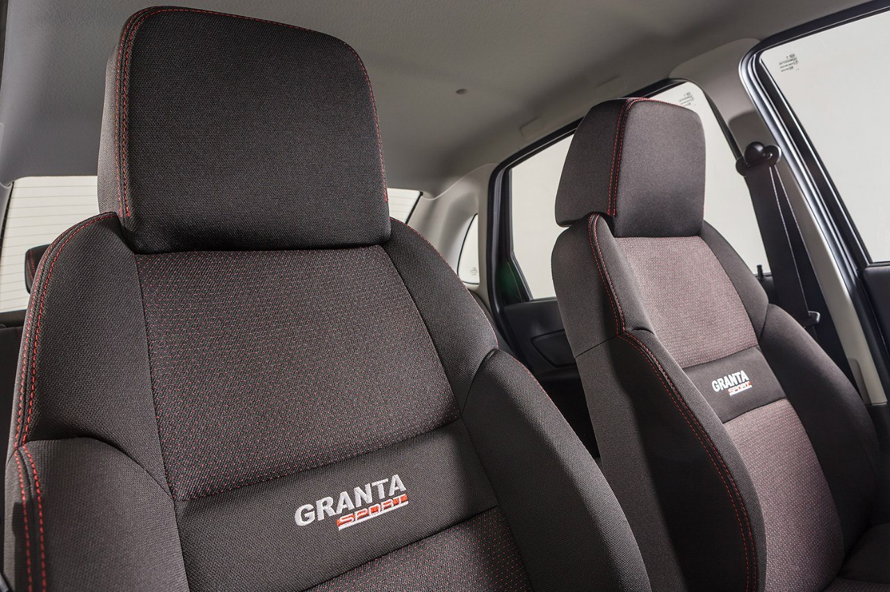 Granta Sport mai plusează cu jante mai mari, cu un design racing, puse în evidenţă atât de pragurile suplimentare, cât şi de garda la sol uşor coborâtă. În plus, pe spate tamburii de frână au fost înlocuiţi cu discuri de frână, un upgrade binevenit.