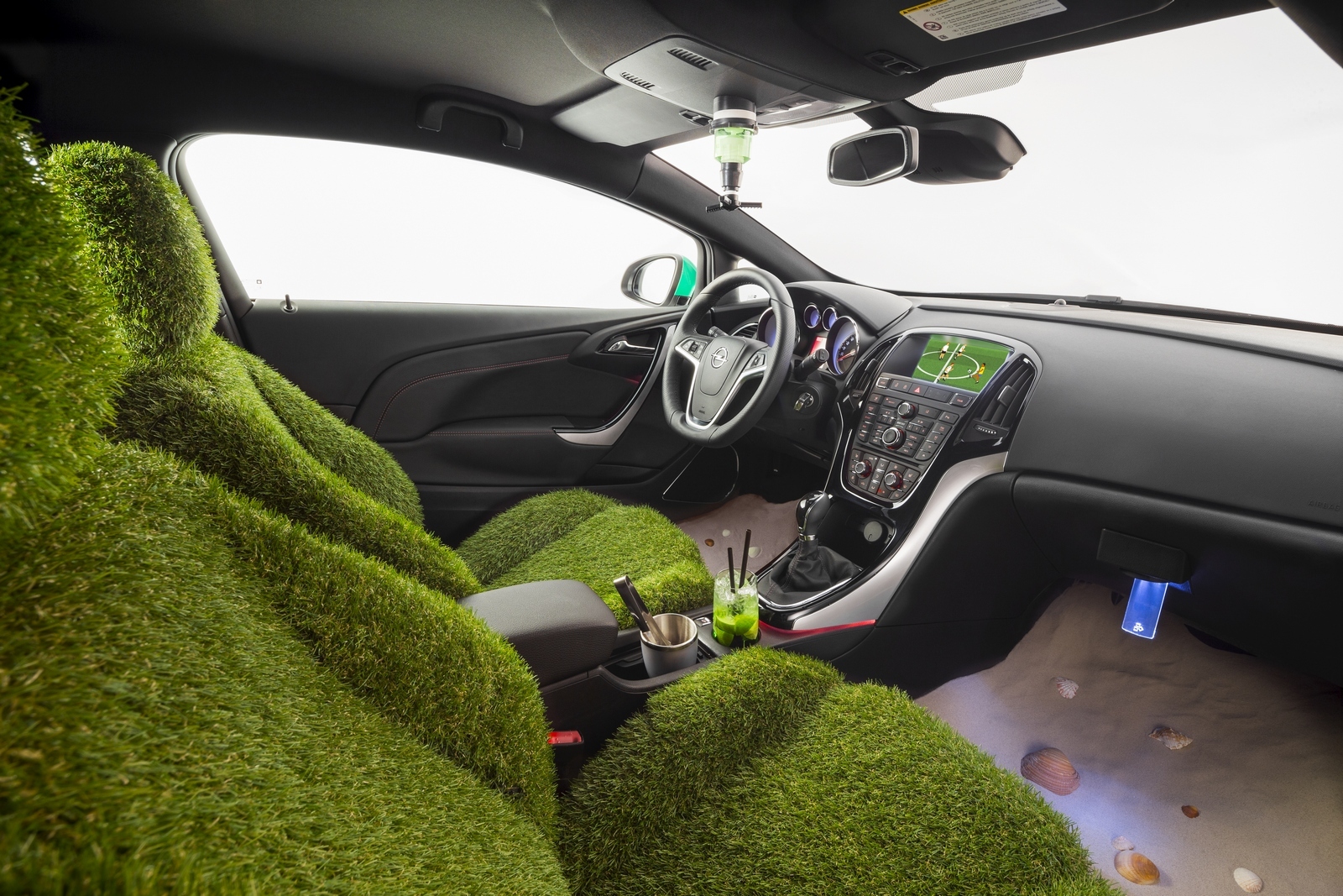 O capodoperă de măiestrie, designerii de interior ai Opel au utilizat cu succes iarbă originală de pe faimosul stadion Maracanã. Fiecare maşină vine cu un certificat de confirmare a autenticităţii acesteia. La fel de autentice sunt şi spaţiile pentru picioare umplute cu cel mai fin nisip Copacabana – acest indiciu de plajă este cel care a şi dat numele Astra. Şi fiecare ediţie specială vine cu o pereche de papuci flip-flops.