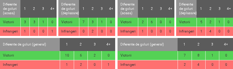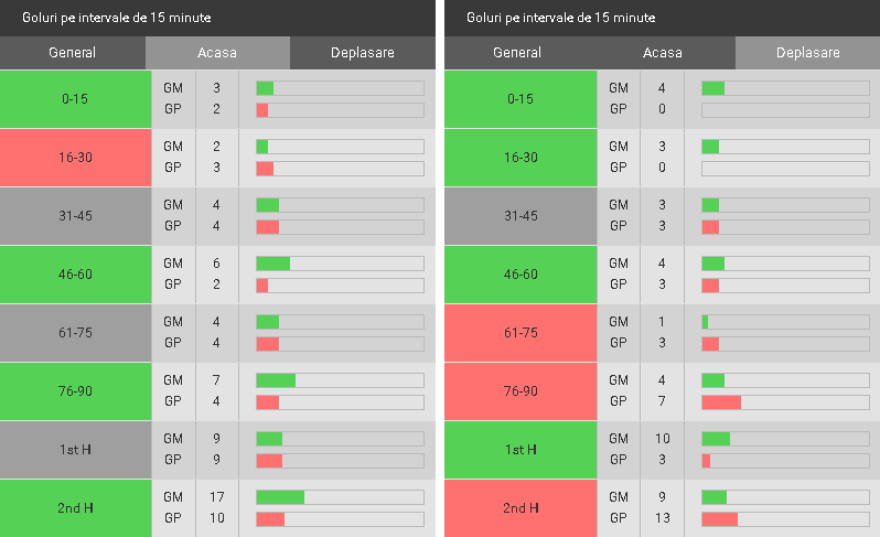 Însă, interesant este faptul că roş-albaştri au un bilanţ negativ în repriza secundă şi mai ales în ultimele 30 de minute ale meciurilor din deplasare, în timp ce formaţia antrenată de Marius Şumudică stă chiar foarte bine la acest capitol.