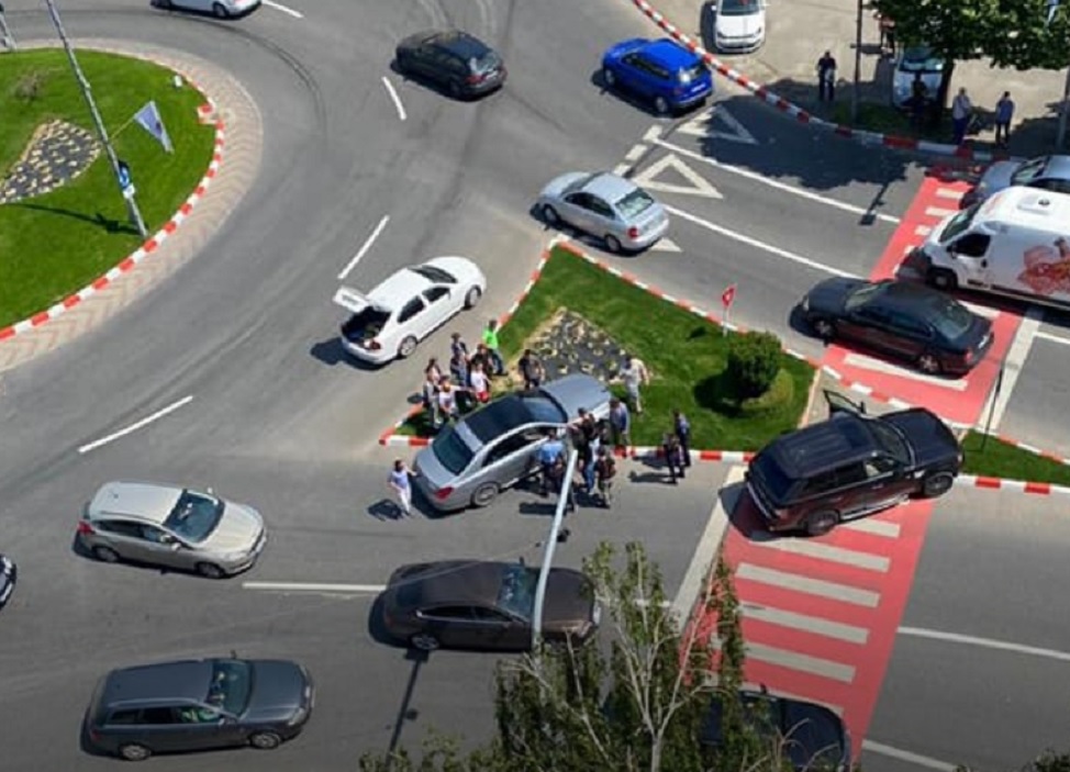 Un autoturism la volanul căruia se afla un șofer inconștient, care s-a dovedit a fi şi sub influența băuturilor alcoolice, a fost implicat într-un accident, sâmbătă, pe o stradă din Pitești, unde a lovit un autobuz, după care s-a oprit pe spațiul verde al unui sens giratoriu.