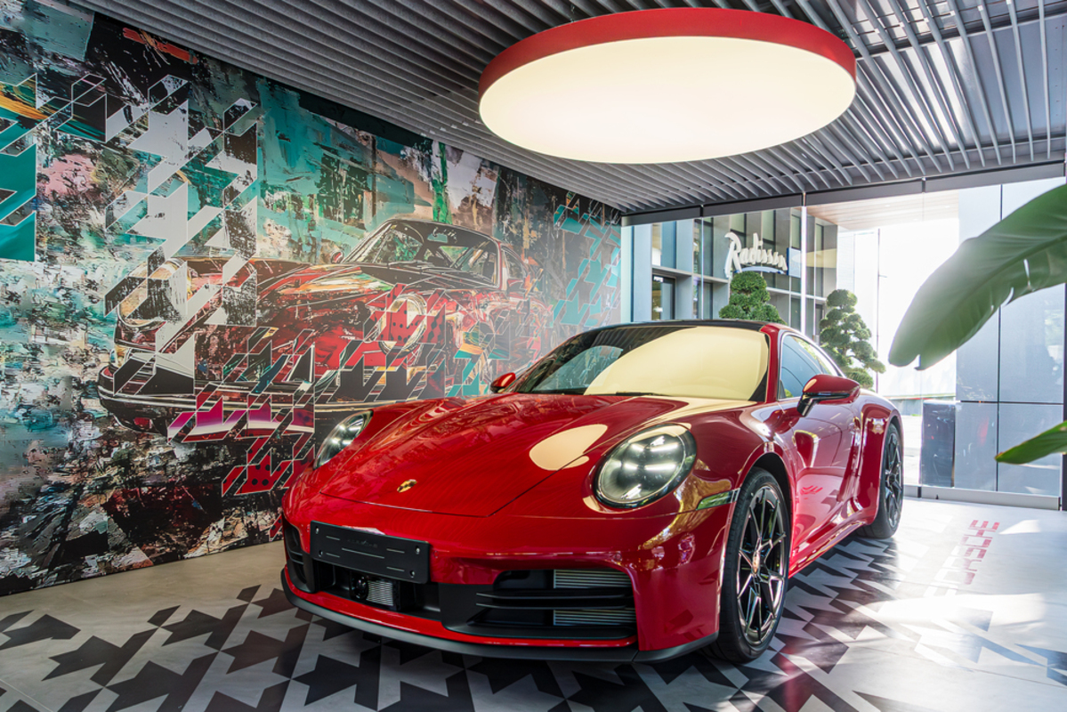 Una din cele mai spectaculoase lucrări de arte prezente în această locație este sculptura supra dimensionată după modelul 911 Sport Classic, creată chiar de un artist român, Costin Ioniță. Întâlnim și un Porsche 911 Carrera de culoare roșie, modelul reprezentativ al brandului, ce a făcut istorie încă de la debutul său, în 1963. Cu timpul, în locul acestui 911 vor mai fi expuse diferite modele, precum Taycan, Cayenne sau Macan.