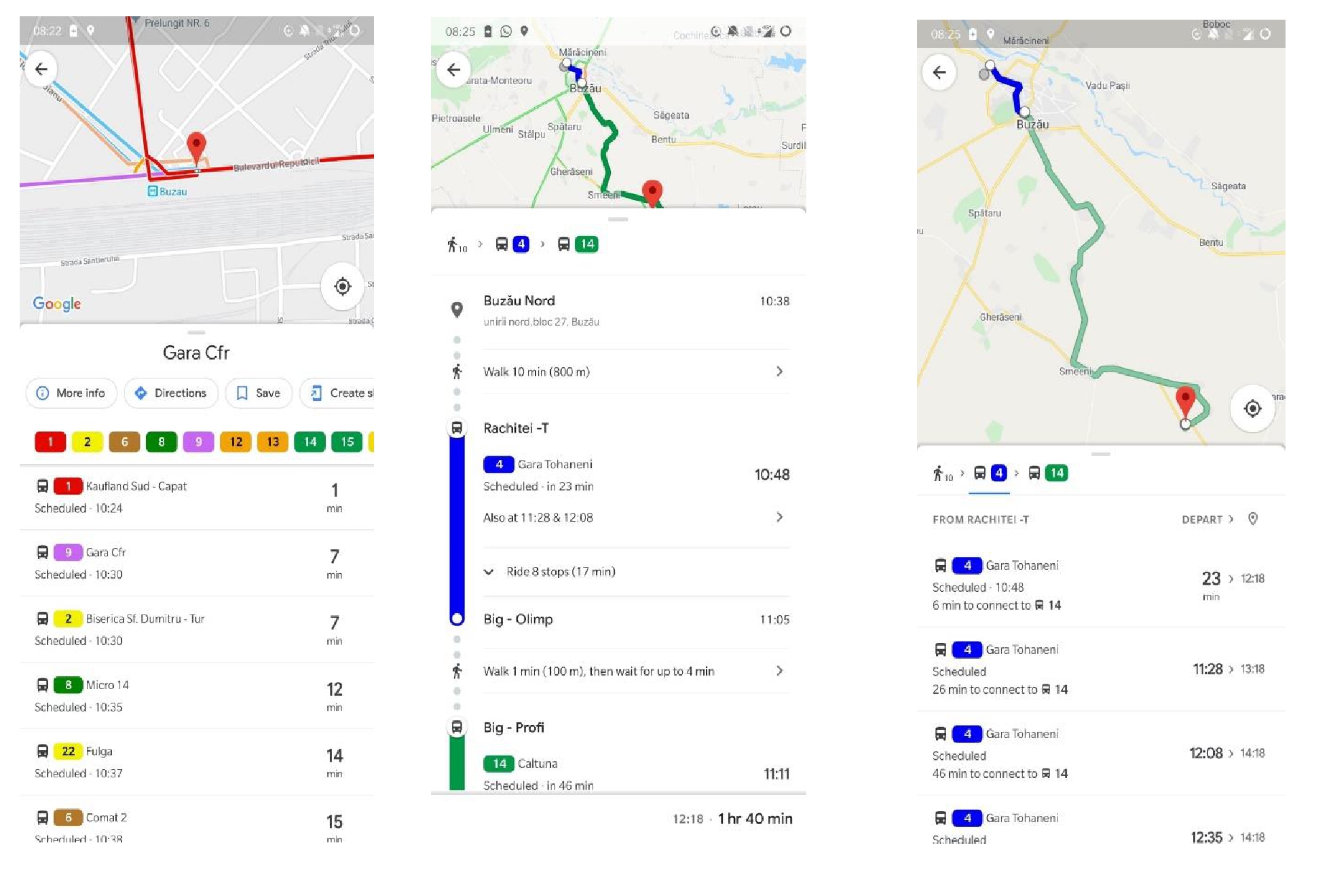 Astfel, se poate planifica o călatorie din punctul A în punctul B, cu afișarea timpului de mers pe jos la si de la cele mai apropiate statii de transport, precum și vizualizarea orarului de transport actualizat pentru deplasarea selectata.