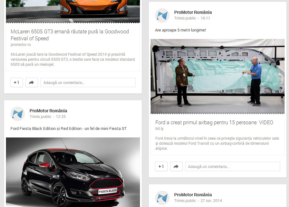 Facebook. Toată lumea stă pe Facebook. Chiar şi noi avem un cont acolo şi trebuie să vă mulţumim tuturor, fiindcă mai avem puţin şi ajungem la pragul de jumătate de milion de like-uri, lucru care nu s-ar fi putut întâmpla niciodată fără ajutorul vostru. Dar, totodată, ştim că nu toată lumea e fan Facebook, aşa că ţi-am pregătit linkuri către toate reţelele sociale unde ProMotor e prezent. Mai exact – Twitter, YouTube, Google+, Instagram şi Tumblr.