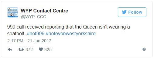 Poliţia din West Yorkshire a primit informaţia de la un cetăţean care a surprins-o pe Regină în timp ce se deplasa spre Palatul Buckingham.