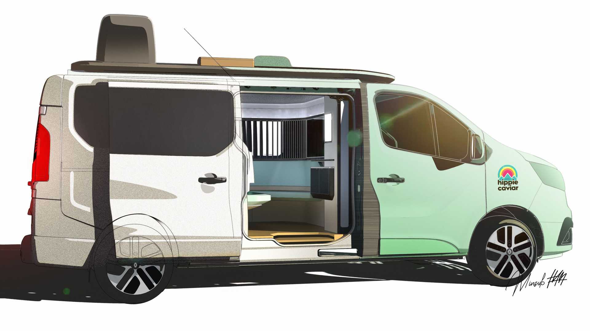 Renault propune un concept de rulotă ce mixează senzația festivalului Woodstock cu aspectul luxos al unui hotel de 5 stele de pe Champs Elysees. Acesta se numește Hippie Caviar Hotel și va fi prezentat la Dusseldorf Caravan Salon 2021.