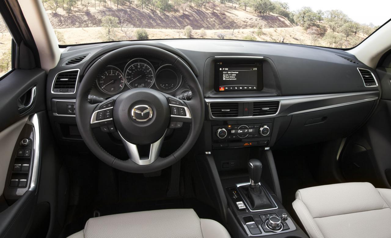 Interiorul a primit materiale cu o mai bună calitate, împreună cu scaune faţă şi inserţii noi. Frâna de mână electronică este disponibilă şi aici, împreună cu sistemul de infotainment Mazda Connect. Ca şi în cazul modelului Mazda6, şi CX-5 primeşte o mai bună antifonare.