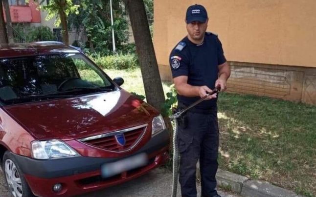 Jandarmii au scos luni din maşina unui şofer din Turnu Severin un şarpe de peste un metru şi jumătate, care se ascunsese în motorul autoturismului.