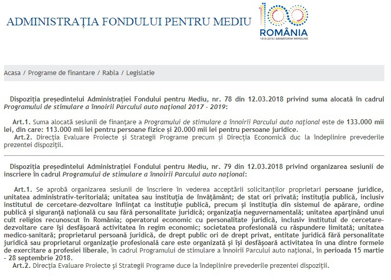 Programul Rabla va continua şi în 2018. Prin intermediul acestui program, românii îşi pot schimba maşinile vechi cu unele noi. Astfel, persoanele fizice vor putea cere de la stat peste 9.000 de lei. Prima de casare se scade direct din preţul maşinii noi, astfel că banii de la stat n-ajung niciodată efectiv în mâinile solicitanţilor.