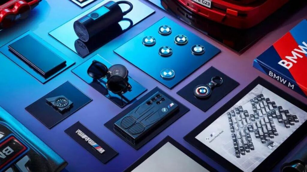 Ediția specială Samsung S23 Ultra dedicată BMW este oferită într-o cutie inspirată de design-ul modelului M3 (E30) și include o husă BMW M, un breloc cu multiple versiuni ale logo-ului producătorului de mașini, un ceas analog și un suport pentru a-l monta pe bordul unei mașini.
