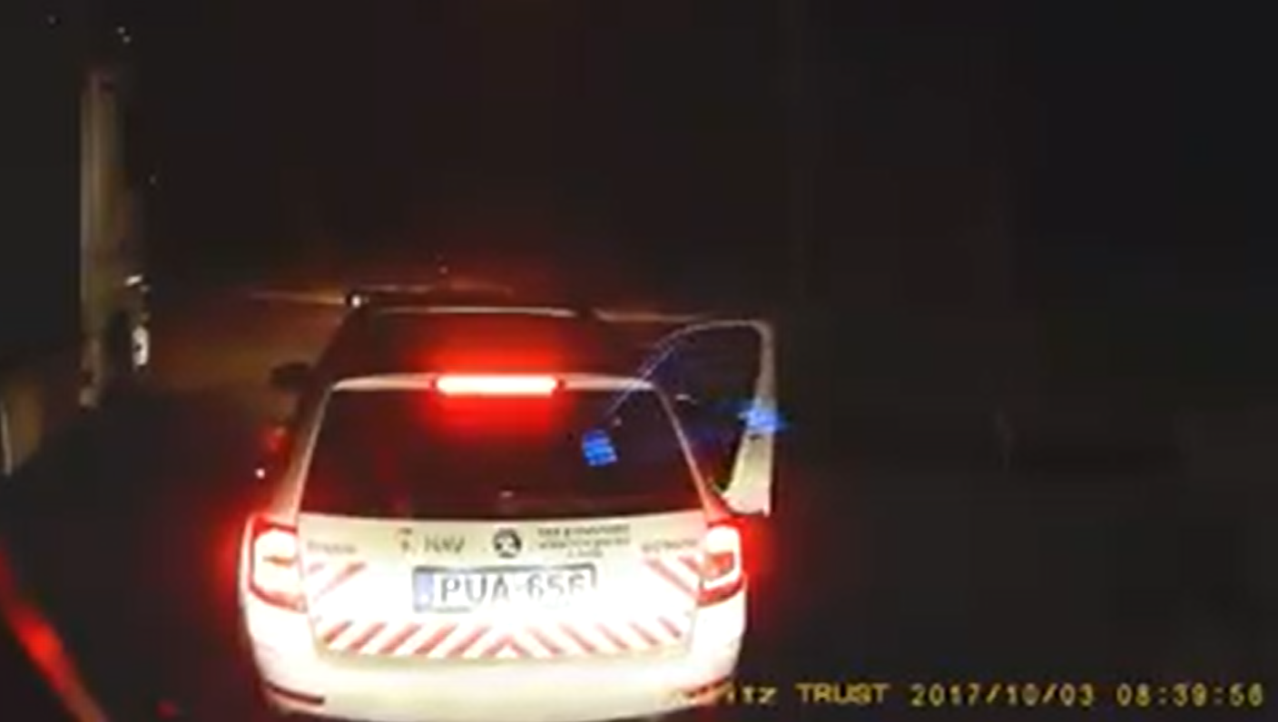 Din înregistrare ne putem da seama că șoferul se întorcea spre România, prin Ungaria. La un moment dat, în fața lui, apare o mașină de poliție care îi face semn să oprească.