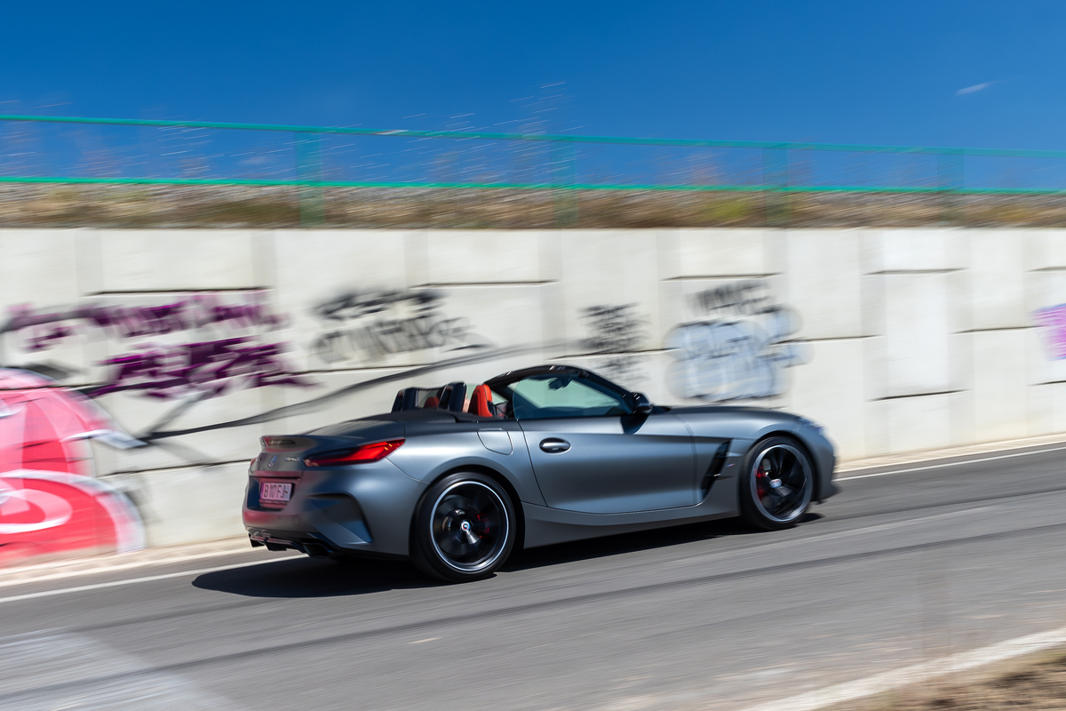 Mașina testată a fost un Z4 în versiunea M40i. Acest lucru înseamnă că am avut la dispoziție cel mai mare și mai puternic motor pe care îl poți avea pe BMW Z4. Este vorba de motorul B58, un șase cilindri în linie de 3,0 litri, supraalimentat cu o turbină. Rezultatul se transpune în 340 CP și 500 Nm cuplu motor maxim. Este o putere pe care o vei simți pe caroseria relativ ușoară a lui Z4 și care va face ca anvelopele de pe puntea spate să muncească peste program.