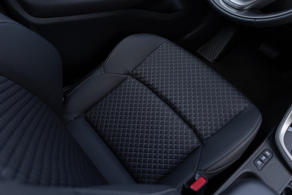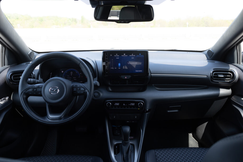 Texturile și combinația de materiale sporesc calitatea percepută, în timp ce scaunele sunt suficient de confortabile chiar și pentru călătorii mai lungi. Combinația de textil și piele ecologică se simte bine la atingere, iar tapițeria cu model în formă de romb de pe versiunea Homura pare adusă de pe o clasă superioară.