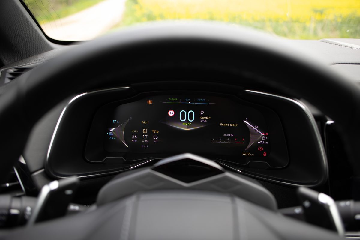 Am avut de-a face cu un hibrid plug-in, așa că trebuie să vorbim și despre autonomia pur electrică. Mașina este dotată cu o baterie de 14,2 kWh, iar DS spune că ar trebuie să fie suficientă pentru o autonomie teoretică de 62 de kilometri. Cu bateria încărcată complet, am reușit o autonomie reală de aproximativ 40 de kilometri, ceea ce ar putea fi de ajuns pentru cei ce fac naveta și pot încărca mașina acasă, astfel că se vor deplasa prin oraș strict în modul pur electric. Odată golită bateria, am reușit un consum mixt de 7 litri la suta de kilometri, ceea ce pentru o mașină atât de grea nu este rău deloc.
