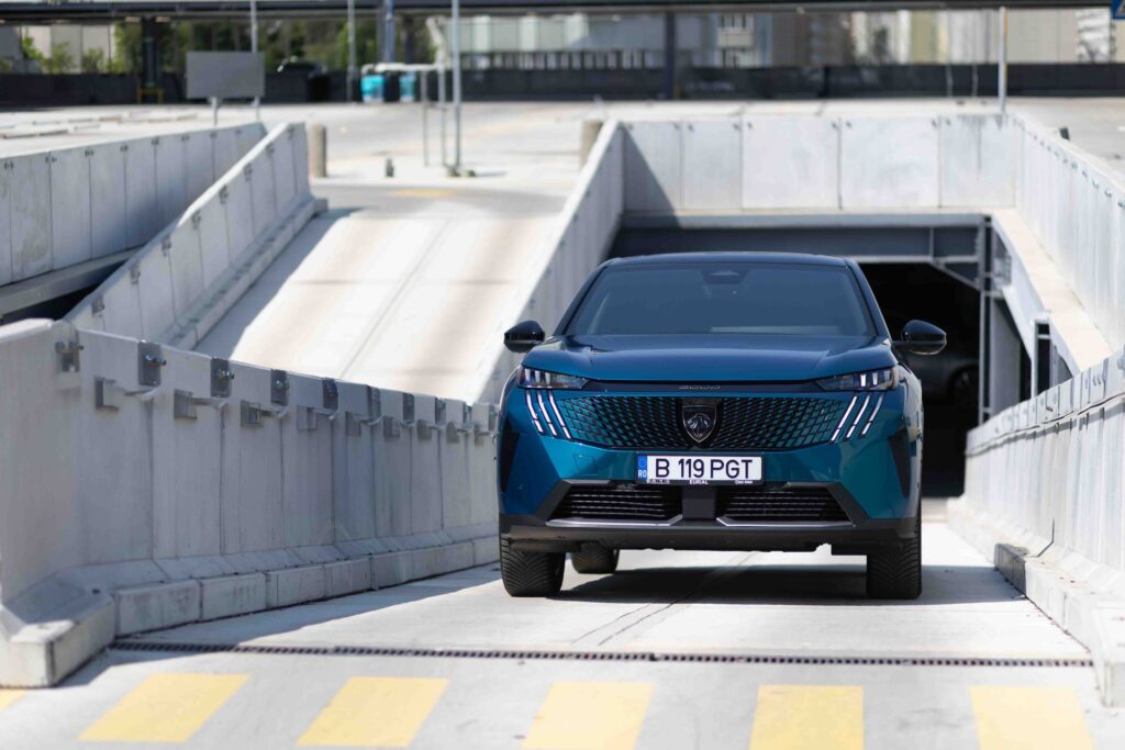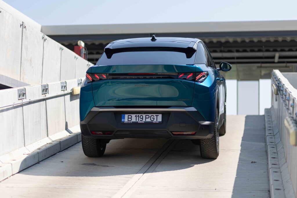 Am avut la dispoziție o mașină în echiparea de top GT, pe care o recunoaștem ușor după siglele Peugeot montate pe fiecare dintre aripile frontale. De asemenea, nuanța Obsession Blue scoate în evidență fiecare linie a caroseriei. În contrast cu acesta este plafonul negru, care separă și mai bine suprafața vitrată de restul caroseriei. Silueta este completată, în acest caz, de un set de jante de 19 inch.