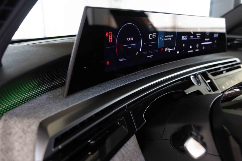 Restul funcțiilor, printre care și climatizarea, au fost mutate în ecranele mașinii. În această echipare de top, Peugeot 3008 propune noul i-Cockpit Panoramic, adică un ecran curbat de 21 de inch, care a fost împărțit în două zone distincte. Prima jumătate oferă toate informațiile necesare șoferului, iar cea de-a doua afișează interfața sistemului multimedia. Aici sunt integrate toate funcțiile mașinii, lucru ce poate deveni frustrant uneori.