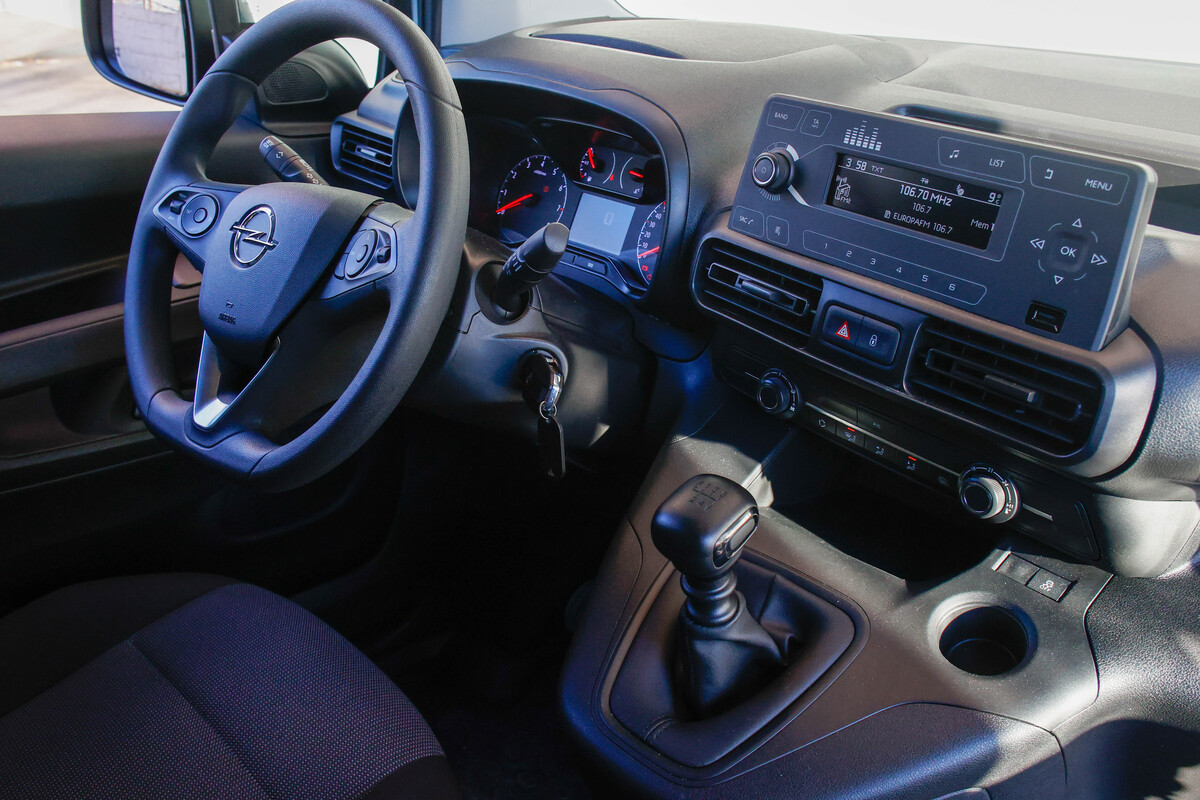 Acum că am lămurit cum stă treabă cu spațiul de depozitare din spate, ne putem muta atenția către cabina lui Opel Combo. Interiorul este, așa cum ne-am putea aștept, realizat din materiale simple, durabile. Fețele de uși și planșa de bord sunt fabricate din plastice tari, dar care se simt solide. Fiind un vehicul care va fi folosit pentru a transporta diverse mărfuri, nu este cazul să avem așteptări de mașină premium.