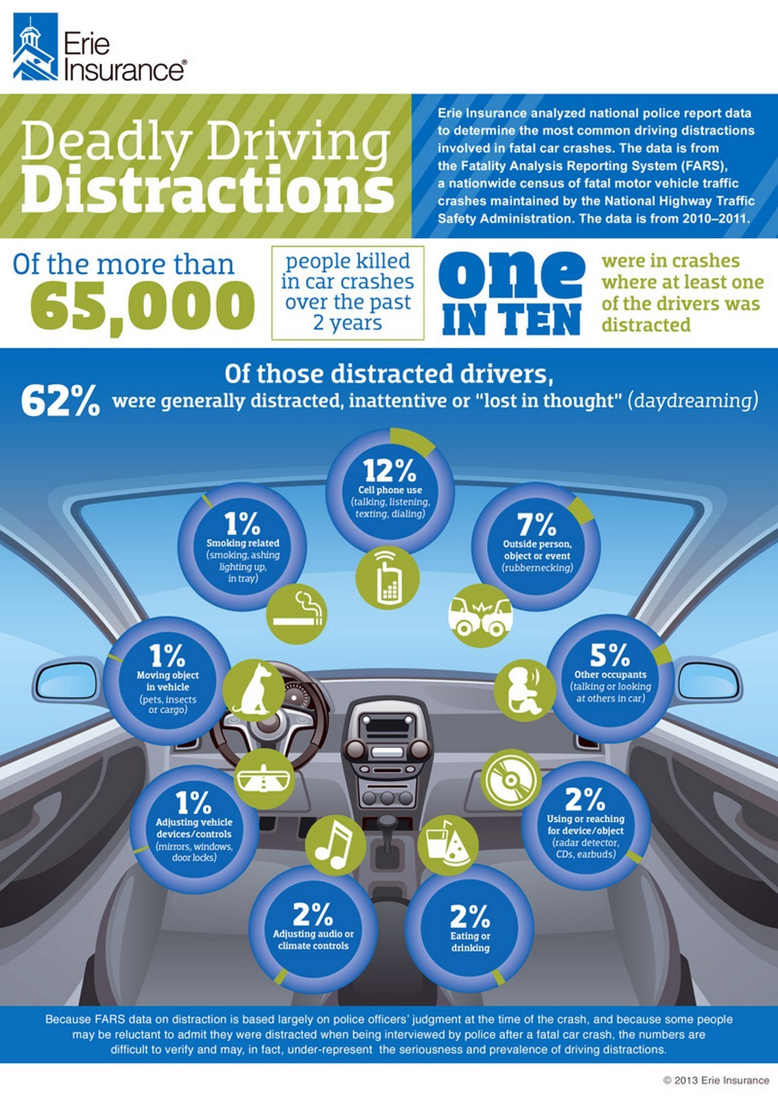 „Conducerea neatentă şi > fac ca şoferii să nu se mai concentreze 100% la drum, să ia mâinile de pe volan şi să-şi piardă din vedere scopul principal: să ajungă în siguranţă la destinaţie”, a declarat Doug Smith, vicepreşedinte la Erie Insurance.