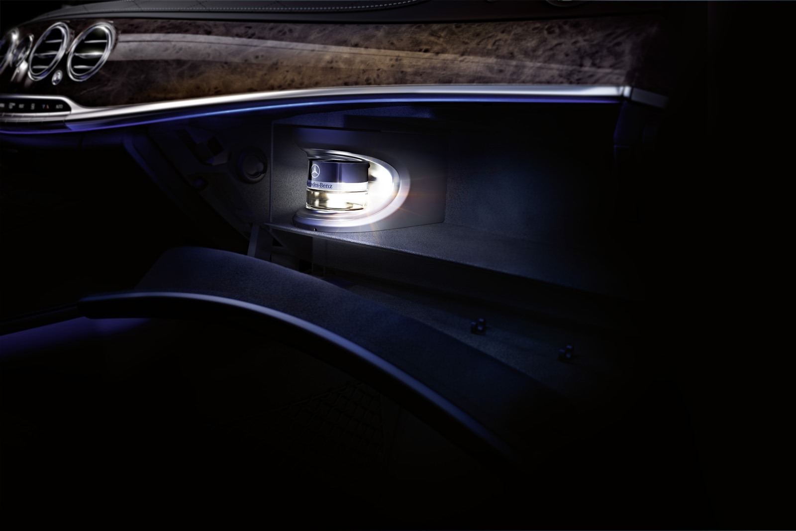 Probabil cea mai extravagantă chestie din noul S-Class: sistemul de parfumare a interiorului, dezvoltat cu specialistul Marc vom Ende, unde poţi folosi o varietate largă de flacoane special create. Dedicaţie pentru doamnele director. Sau pentru asistentele-amante?…