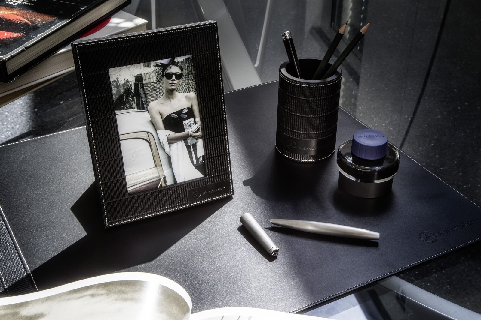 Câteva lucruri necesare pentru directorii obsedaţi care trebuie să arateşi la birou că deţin noul S-Class: o ramă foto, un suport de creioane şi pixuri, un stilou clasic alături de o călimară cu cerneală, ba chiar şi un mouse-pad din piele