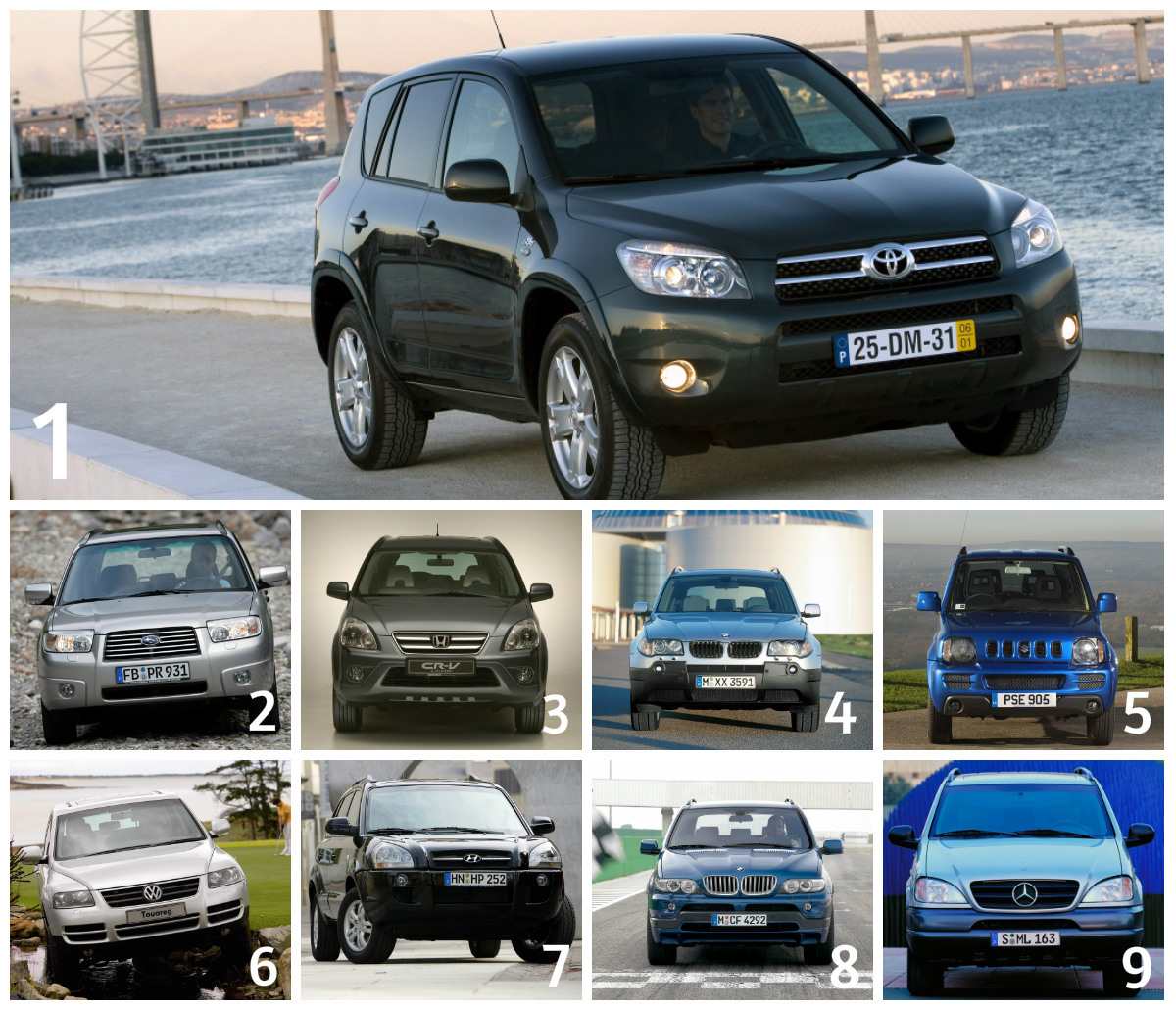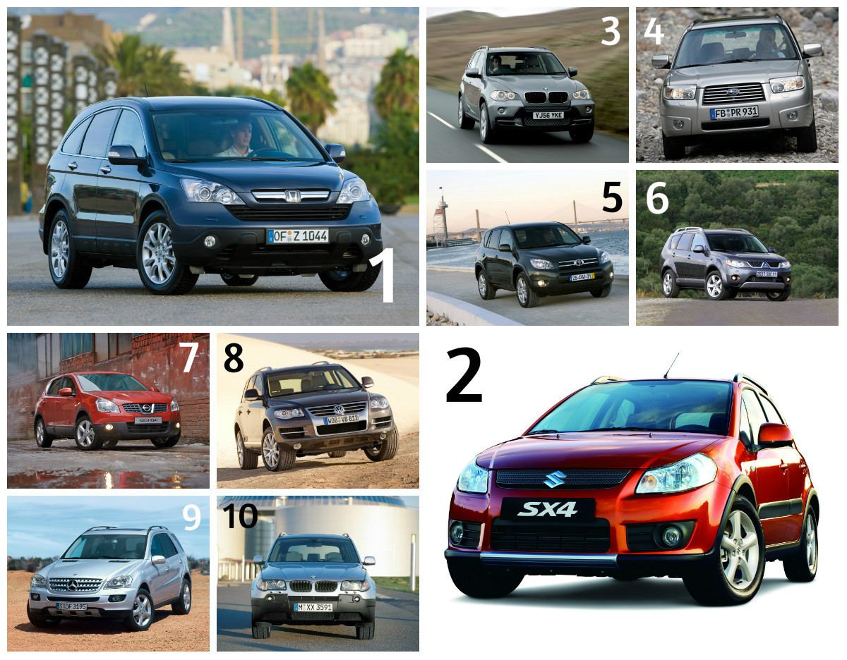 Iată, aşadar, care sunt cele mai fiabile SUV-uri şi crossovere second hand din Germania – între paranteze este kilometrajul mediu, iar procentul reprezintă rata de apariţie a defecţiunilor (cu cât e mai mic, cu atât e mai bine). Acolo unde nu există zece poziţii înseamnă că listele TÜV Report nu mai includ alte modele.