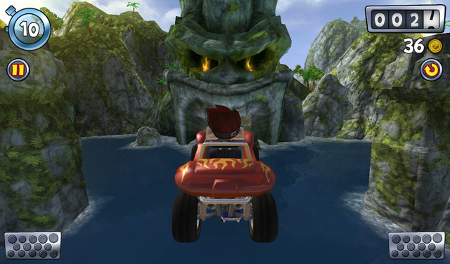Cu o grafică simpatică şi maşini comice, acest joc de tip arcade racer te poartă prin teritorii ciudate, de la vulcani în erupţie până la zăpezi sau junglă, cu efecte interesante pentru ecranele de smartphone-uri.