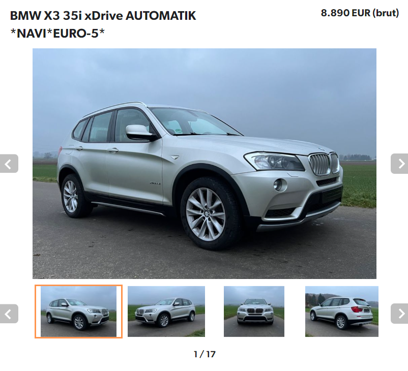 Interiorul este finisat cu piele crem, ornamente din lemn și un volan sport M. Acest X3 se vinde pe Mobile.de cu suma de 8.890 de euro.