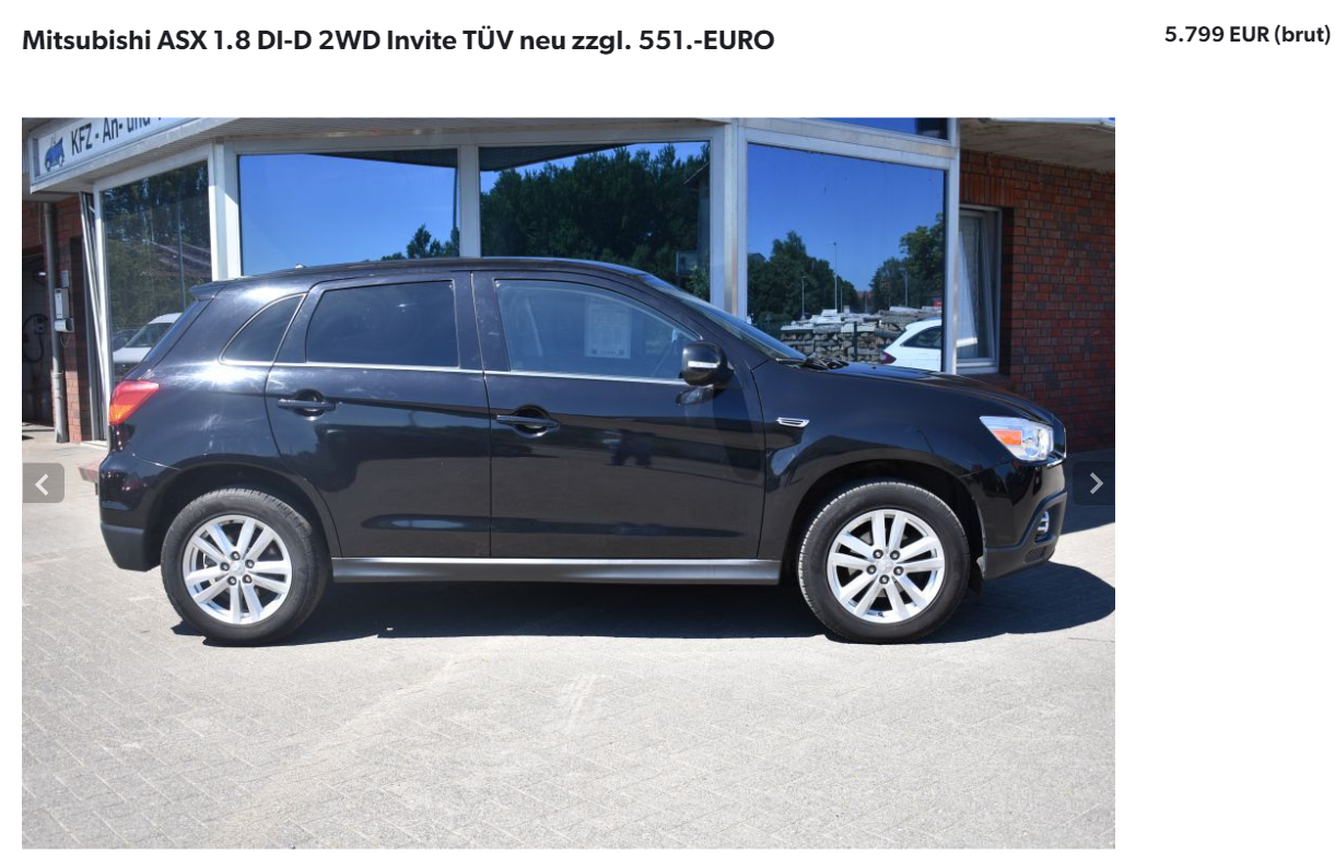 Rămânem în tabăra japonezelor și pentru următoarea mașină, anume Mitsubishi ASX. SUV-ul de mici dimensiuni oferit de Mitsubishi este o mașină simplă, fără prea multe pretenții, dar care poate satisface nevoile pentru majoritatea cumpărătorilor. Am ales un model din 2010 cu motorul de 1,8 diesel, care produce 150 CP. Transmisia este una manuală, iar puterea este livrată doar punții față. Mașina are la bord 265.912 de kilometri, dar pare îngrijită, iar interiorul este curat. Prețul cerut este de 5.799 de euro.