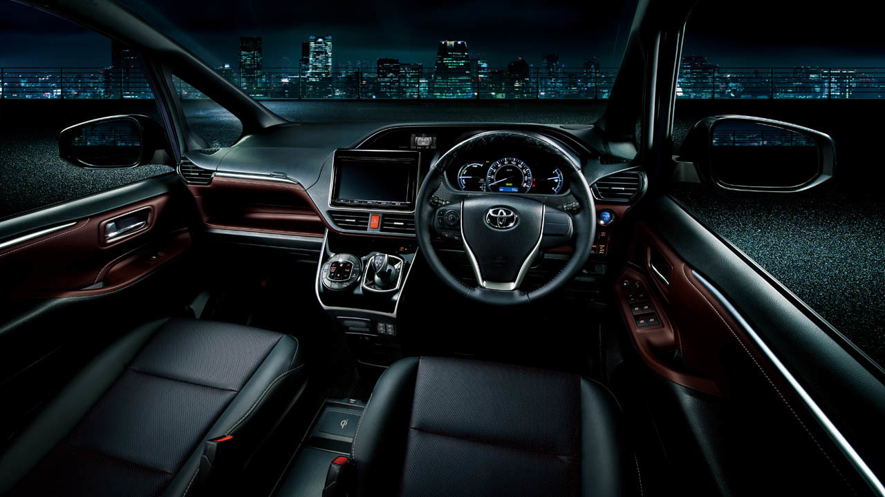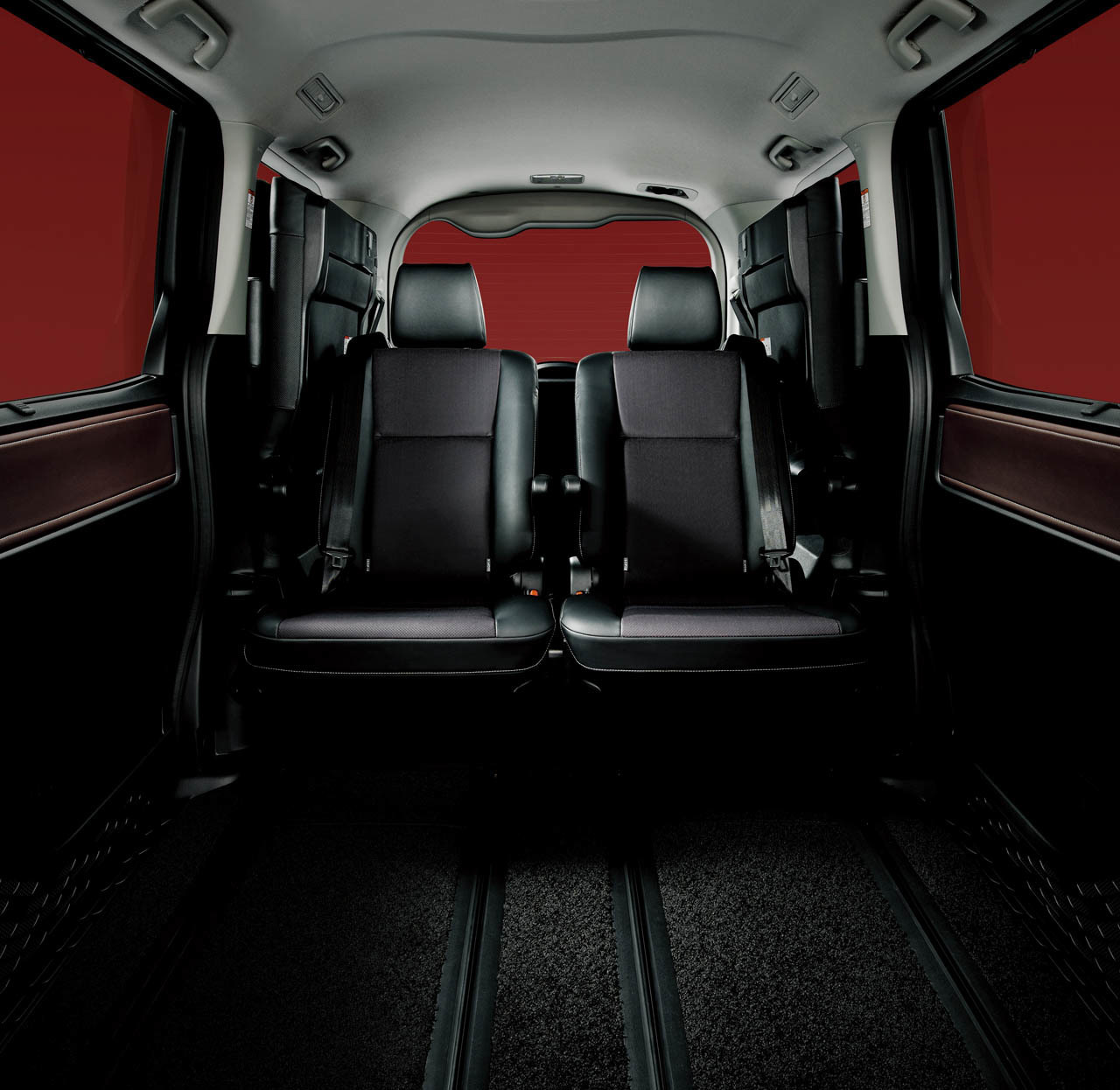 La interior, Toyota spune că monovolumul Esquire oferă spaţiu pentru şapte sau opt persoane (în funcţie de configuraţie), tapiţerie din piele sintetică, inserţii metalice şi elemente decorative din lemn.