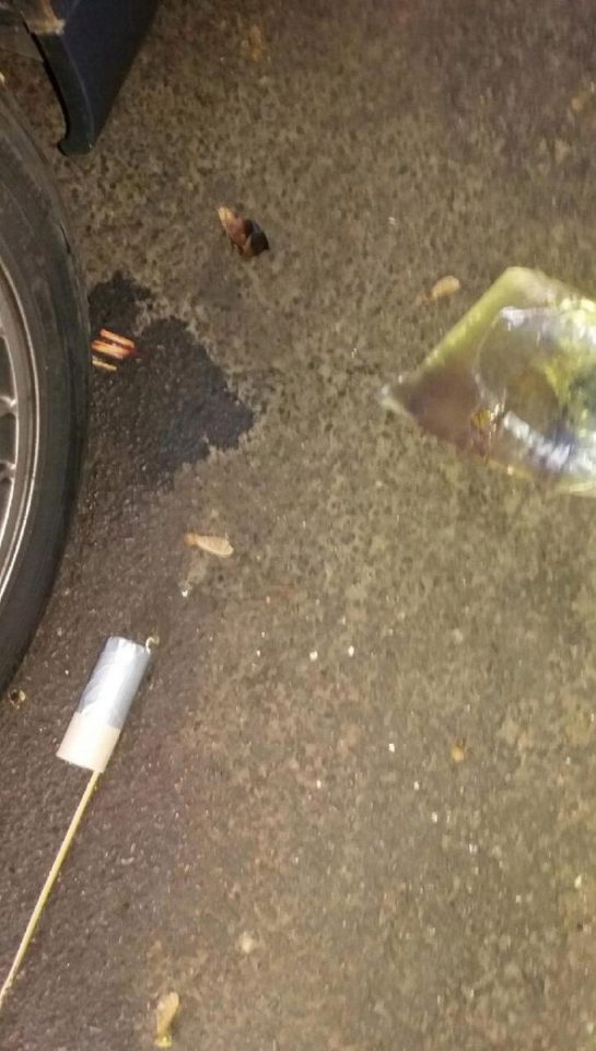 Mel Brown, de 29 de ani, din Hampshire, Anglia, se afla acasă cu cei doi copii ai ei, când, întâmplător, a găsit sub rezervorul maşinii o pungă cu benzină, artificii şi o cutie de chibrituri.