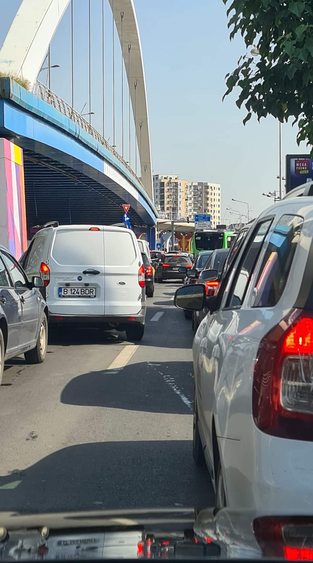 Un accident între un autobuz al STB şi un autoturism s-a produs, vineri (25 iunie), în zona Podului Grozăveşti din Capitală.