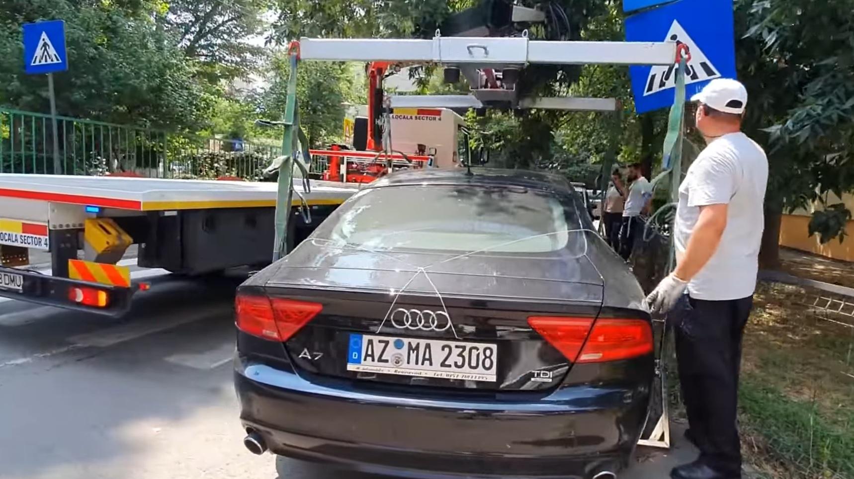 Un Audi A7, parcat de mai multe zile pe o trecere de pietoni din Sectorul 4 al Capitalei, a fost ridicat de angajaţii Primăriei. Zona era marcată şi semnalizată corespunzător, au anunţat reprezentanţii Poliţiei Locale.