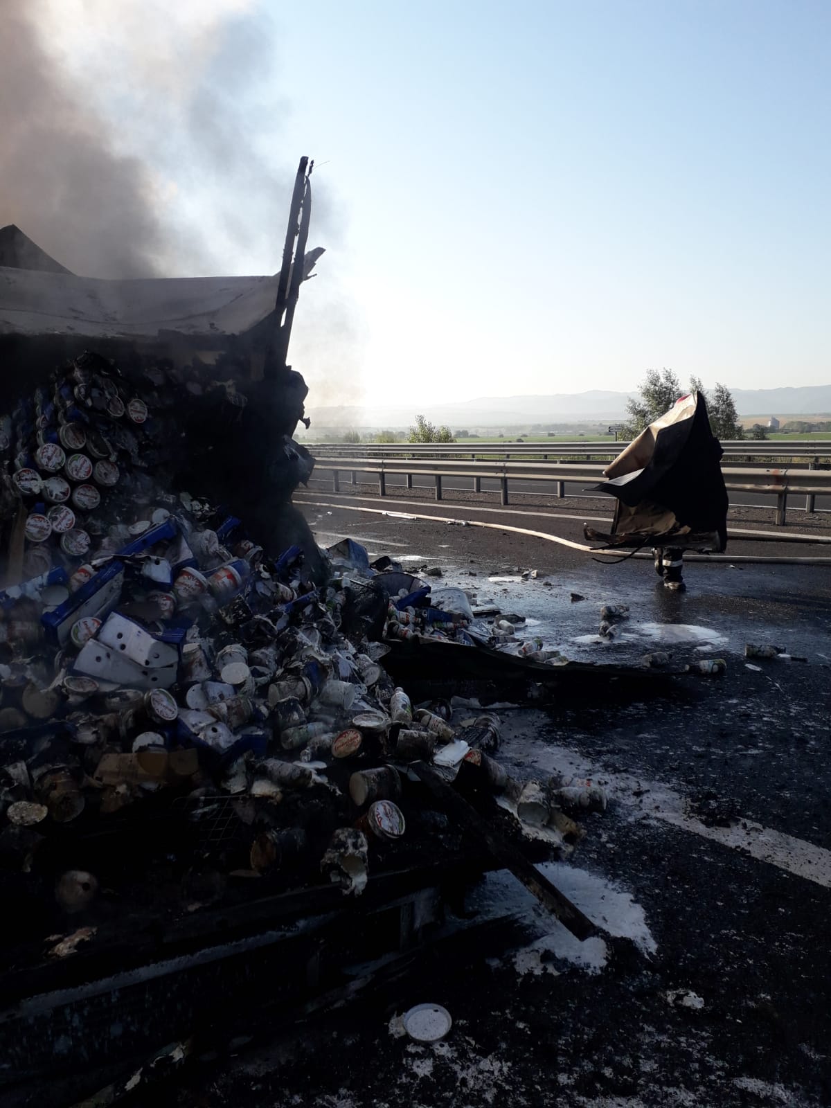 Un camion a fost cuprins de flăcări pe Autostrada A1, în apropiere de Simeria. S-a întâmplat pe direcţia de mers Orăştie – Deva. Incendiul a fost anunţat marţi dimineaţă, 29 iunie, în jurul orei 6:30.