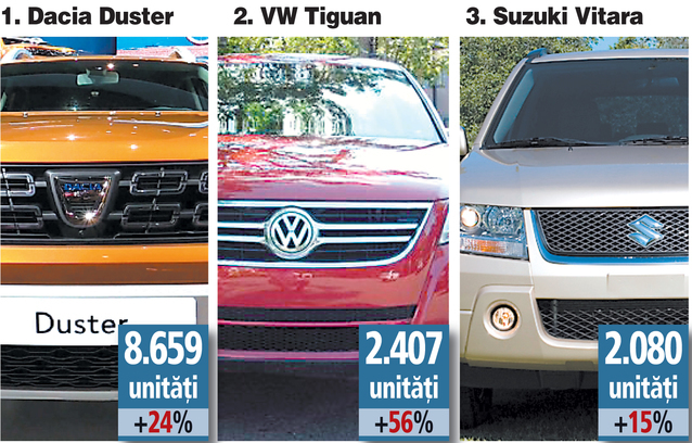 Segmentul SUV-urilor a înregistrat anul trecut cel mai mare salt pe piaţa auto locală, urcând cu aproape trei puncte procentuale spre 26% cotă de piaţă, potrivit datelor din piaţă, pe măsură ce nu doar persoanele fizice, ci şi firmele au preferat maşinile cu o gardă mai mare la sol şi o poziţie mai înaltă de condus. Creşteri au fost punctate şi pe segmentul SUV-urilor mici non-premium, care potrivit datelor Jato Dynamics citate de Ford România au urcat de la 9,3% cotă de piaţă în 2016 la 10,9%. În total, anul trecut vânzările maşinilor de teren au urcat cu 26% faţă de 2016, la aproape 35.000 de unităţi, avansul fiind dublu comparativ cu cel al pieţei auto.