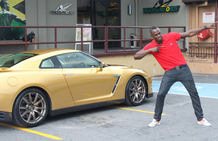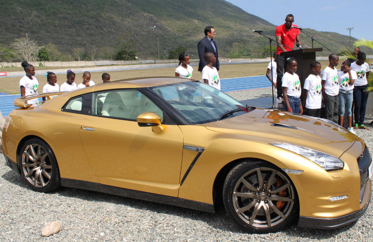 După ce vânzarea la licitaţie a unui Nissan GT-R deţinut anterior de atlet a adus peste 190.000 de dolari Fundaţiei Caritabile Usain Bolt, japonezii au considerat de cuviinţă să-l răsplătească pe jamaican cu un model Nissan GT-R botezat „Bolt Gold”.