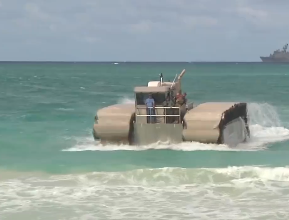 Pe pagina de Facebok a publicaţiei Business Insider a fost postat un filmuleţ cu o nouă maşină de război a Marinei Militare Americane. Arată ca o combinaţie dintre un tanc şi un buldozer, este lung de 12.8 metri, înalt de 5 metri, poate circula cu uşurinţă pe apă şi pe orice tip de teren (nisip, mlaştină, roca), şi poate atinge o viteză de 23 de mile pe oră. În clipul video puteţi vedea cât de bine se adaptează atât pe apă, cât şi pe uscat.