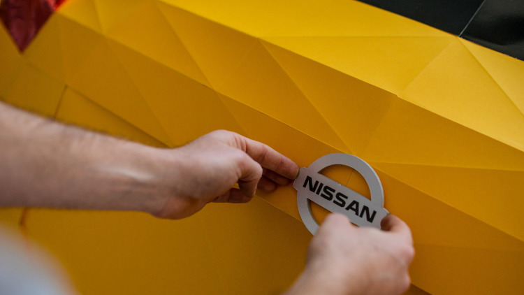 Pentru acest lucru au apelat la un artist britanic, Owen Gildersleeve, care a reprodus un Juke din 2000 de bucăţi de hârtie pliată. Efortul a durat peste 200 de ore de muncă, recreând cu migală fiecare detaliu din hârtie şi lipici – roţi, faruri, stopuri, grilă, siglă.