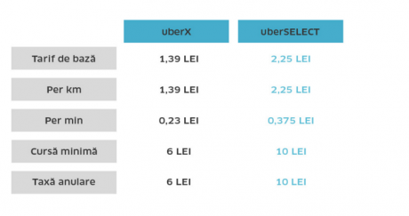 Uber lansează în Bucureşti serviciul UberSELECT, prin care pasagerii vor fi transportaţi cu maşini dintr-o gamă superioară, precum Audi A4, Volkswagen Passat sau Skoda Octavia.