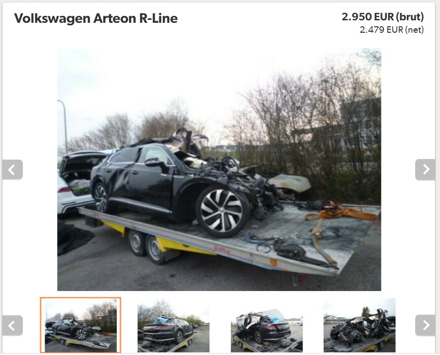 Știm că foarte mulți români nu își permit o mașină nouă așa că am căutat pe internet să aflăm cam care sunt prețurile pentru un Arteon la mâna a doua. Așa am găsit un exemplar la aproape 3.000 de euro, o sumă pe care mulți compatrioți o consideră potrivită pentru achiziția unui autoturism la mâna a doua. Din păcate, mașina găsită pe Mobile.de, nu este funcțională. Ea a trecut printr-un accident grav.