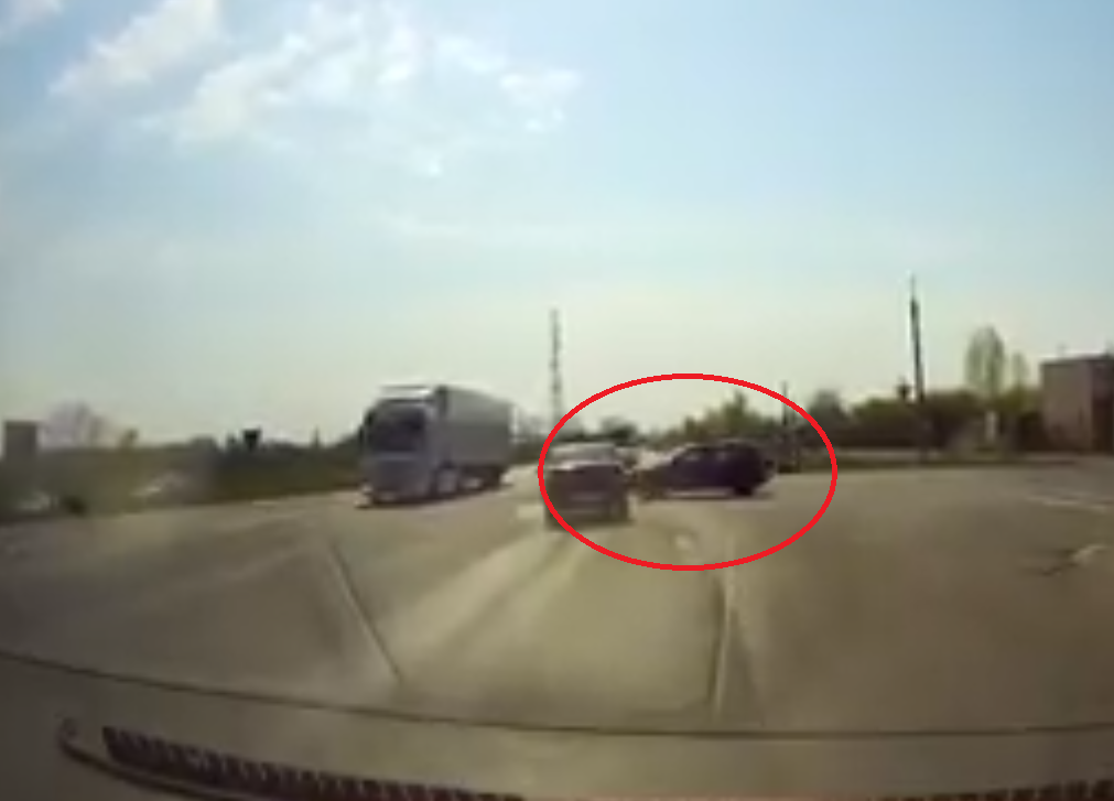 Săptămâna trecută, o șoferiță care conducea un Volkswagen Golf a fost filmată în timp ce intră, în plin, într-un TIR. Ea ar fi putut să prevadă că TIR-ul nu va opri dar a intrat direct în remorca acestuia.