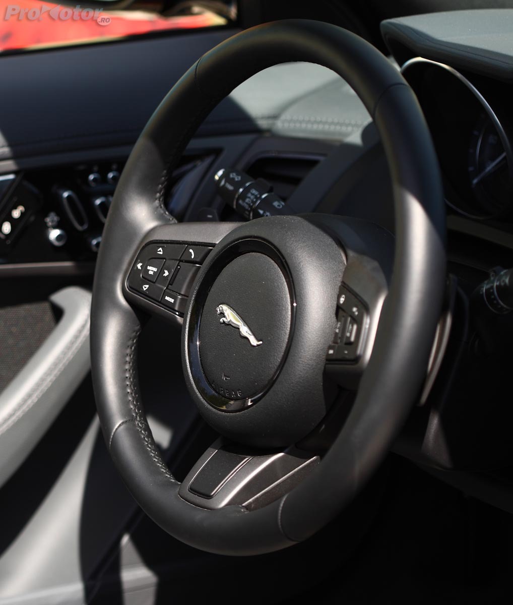 Accesul în noul Jaguar F-Type presupune o mică… ”magie” – mă rog, e o chestie care într-o primă fază e chiar cool şi sigur le va atrage prietenilor: la apăsarea butonului de deblocare de pe telecomandă, mânerele portierelor ies din locaşurile lor, o idee foarte rară în lumea auto.
