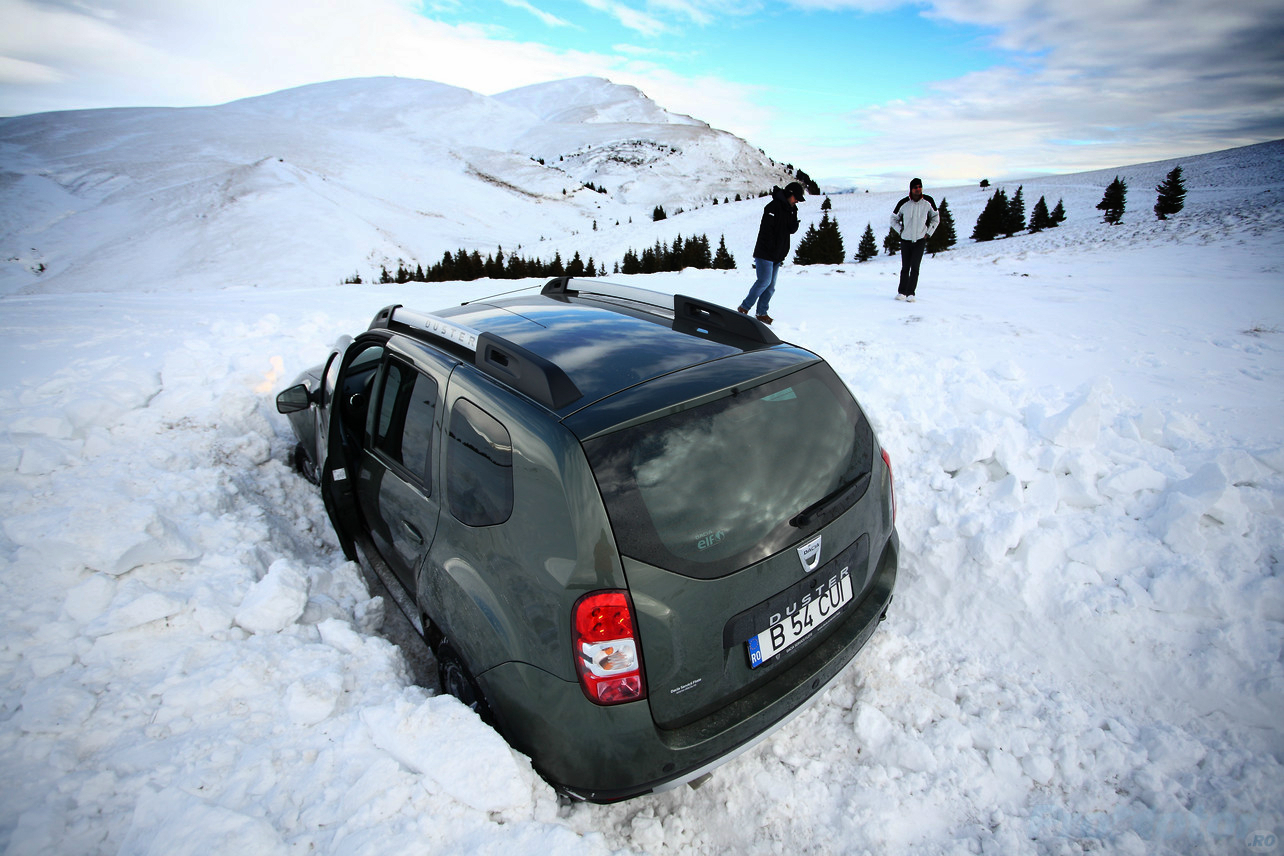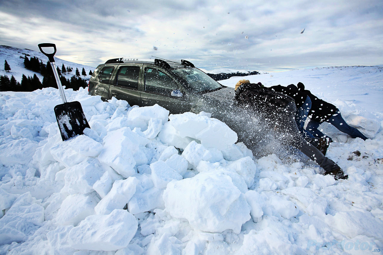 Douăzeci de minute mai târziu, reuşeam totuşi să scoatem Dusterul din troianul de zăpadă fără a fi nevoie să-l tragem înapoi cu şufa, ci doar prin forţe proprii.