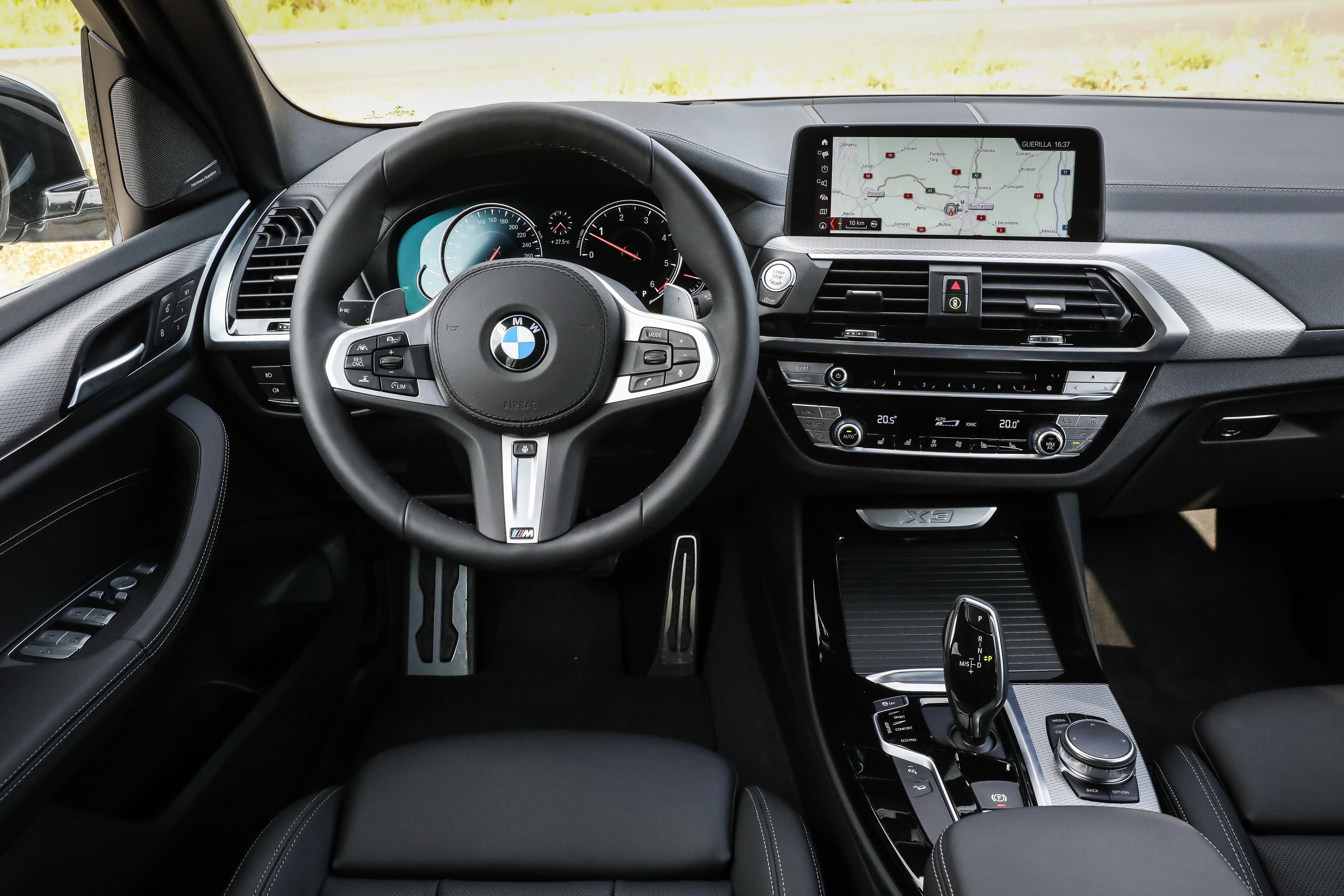 În interior lucrurile stau cum ar trebui să stea într-o maşină premium. Materialele sunt moi la atingere, scaunele sunt foarte confortabile şi oferă un suport lateral bun, iar spaţiul disponibil e mare. Interiorul are ceva împrumutat de la Seria 5, însă există totuşi un sentiment distinct dat de logo-urile X3 de pe partea interioară a uşilor. Finisajele sunt excelente. Butoane fizice au fost decorate cu ornamente galvanizate, iar iluminatul ambiental adaugă un efect special.