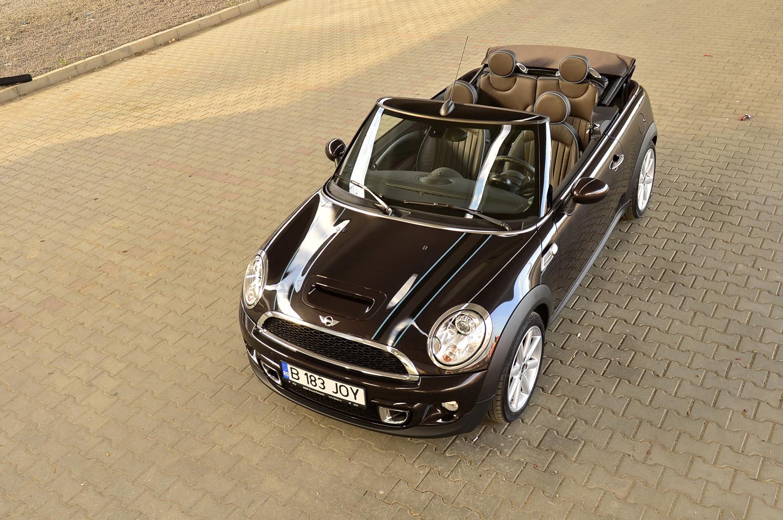 În plus, facelift-ul vine şi cu o serie de noi pachete de personalizare care aduc un plus de rafinament atât aspectului exterior, cât şi interiorului. Iar în cazul nostru, luăm ca exemplu modelul din test, o ediţie specială denumită MINI Convertible Cooper S Highgate. Aceasta vine vopsită în nuanţa Iced Chocolate, o culoare specială care ii dă caroseriei o strălucire aparte atunci când ia contact cu razele soarelui.