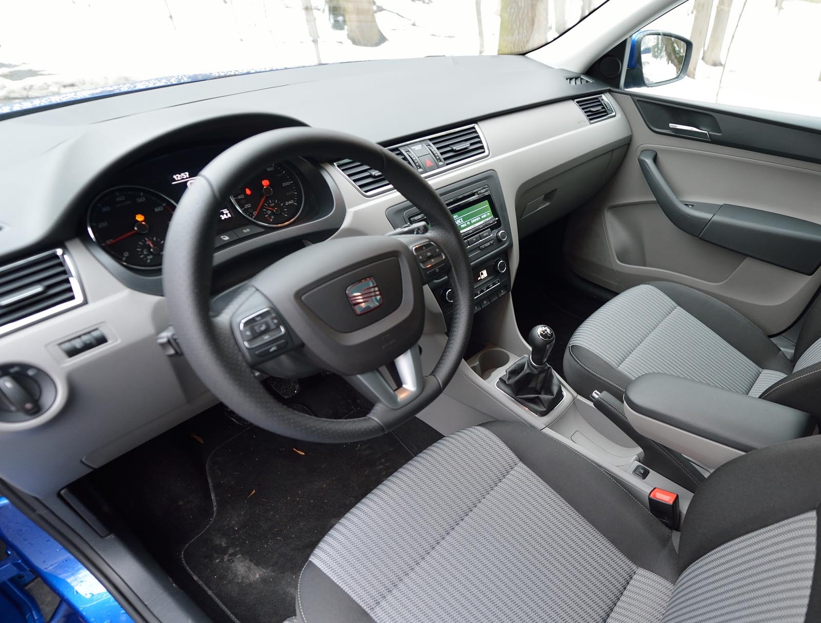 Principala diferenţă se observă în cazul volanului, care, la Seat, e mai elegant, ba chiar mai sportiv decât în Rapid. De asemenea, schimbătorul de viteze arată mai sportiv în Toledo, în rest fiind vorba doar despre diferenţieri mici la nivelul tapiţeriri şi a coloritului plasticelor.
