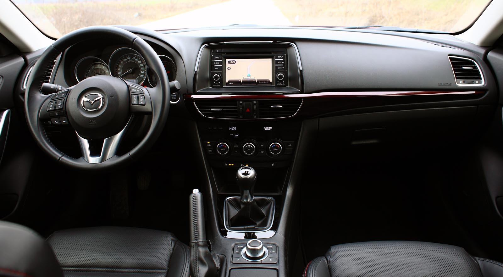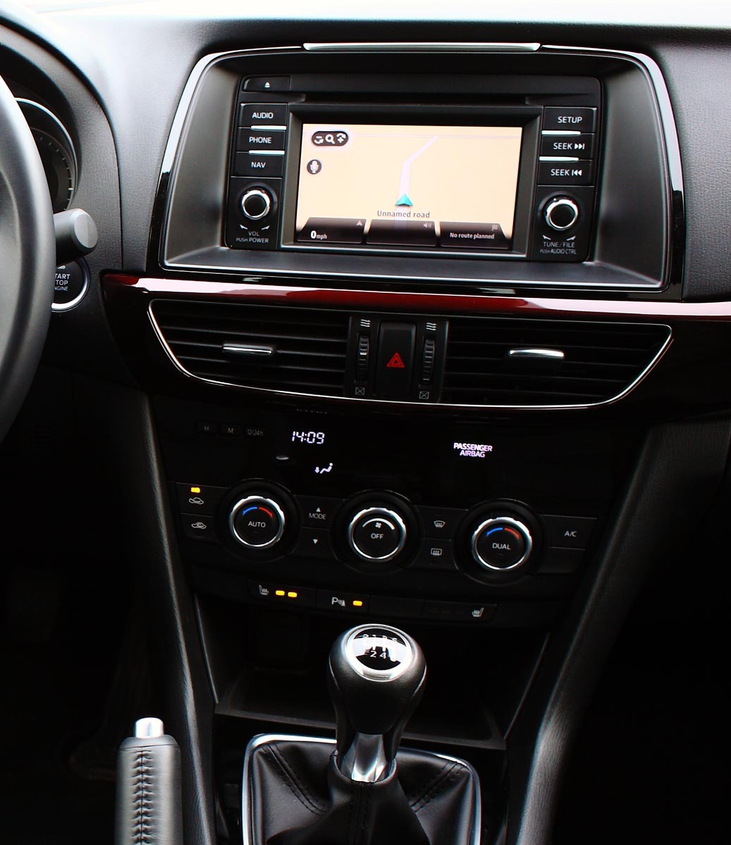 Odată intrat în noua Mazda6, planşa de bord mi-a provocat o senzaţie puternică de deja-vu. Deoarece e similar cam 90% cu bordul din SUV-ul Mazda CX-5 – ceea ce e, de altfel, normal, dat fiind că Mazda6 şi CX-5 utilizează în mare aceeaşi platformă tehnică.