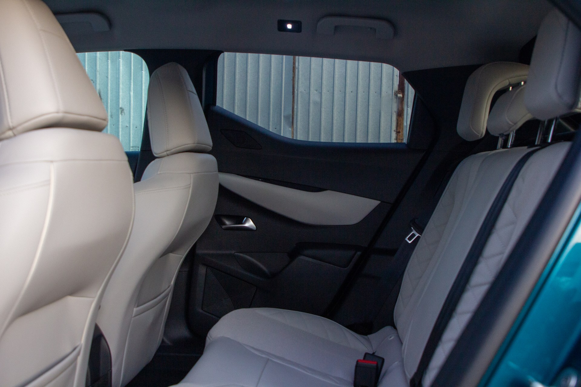 Scaunele din spate sunt ușor înghesuite, iar persoanele care suferă de claustrofobie nu vor aprecia porțiunile de uși asemănătoare aripioarelor de rechin ce reduc vizibilitatea către exterior. Pentru restul, interiorul oferă o impresie excelentă, în special în ceea ce privește alegerea materialelor, care sunt în mare parte plastice moi, de calitate superioară.
