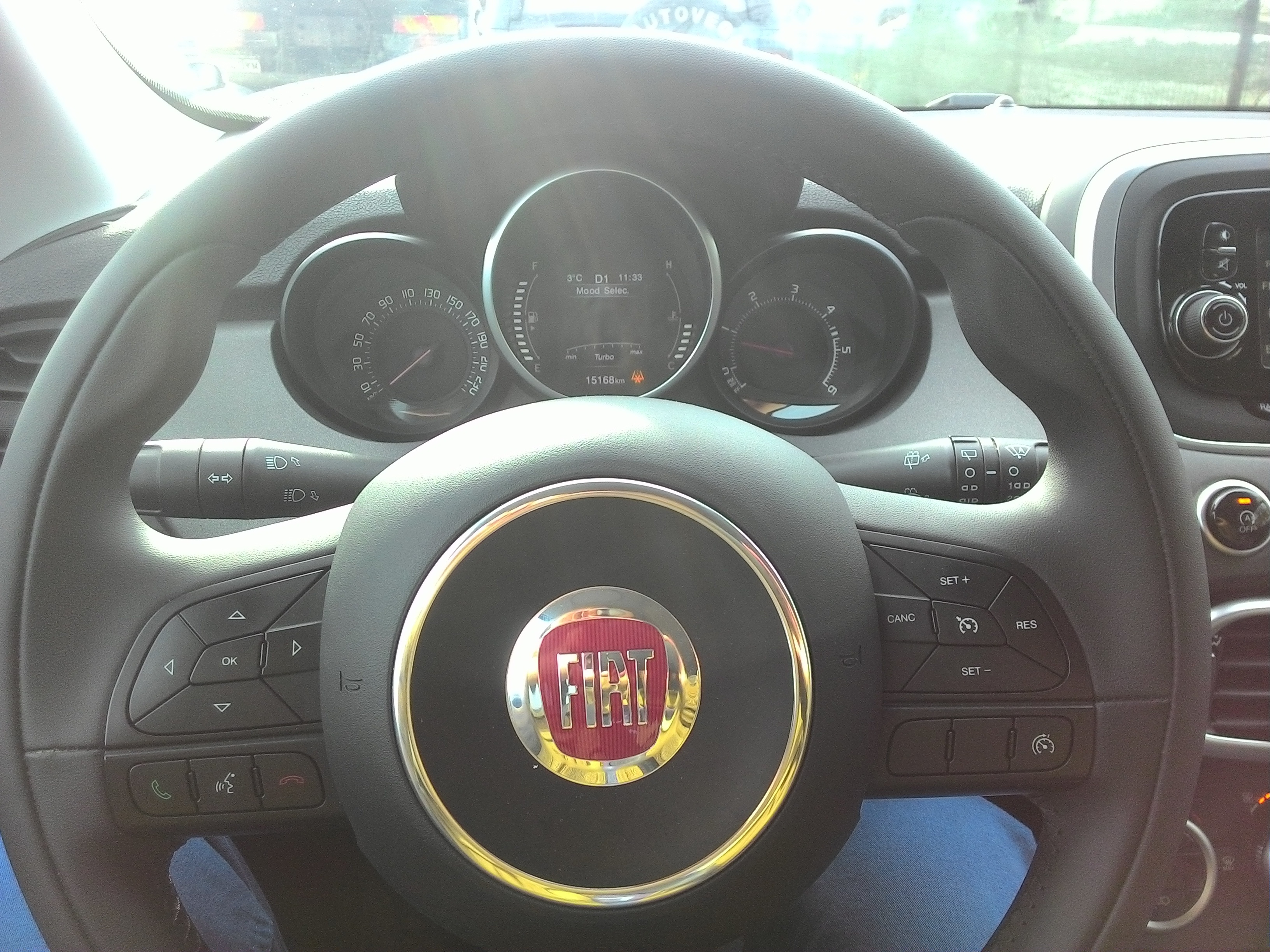 Se uită pe geamul din spate, dă o tură, mai dă una, analizează 1 minut, apoi îi explică soţiei care termina o sesiune de window-shopping şi venise lângă el să vadă la ce se uită: „Fiat. 4×4”. Eu, în maşină, mă jucam cu comenzile vocale ale unităţii infotainment. Are şi comezi vocale şi touchscreen. La 6,5 inci nu e cel mai mare display de pe piaţă, dar suficient de precis încât să-ţi faci treaba cu el chiar şi în mers. Navigaţia TomTom merge brici, mi-a oferit către destinaţii aceleaşi rute pe care mi le făcusem deja în cap, sper că e de bine.