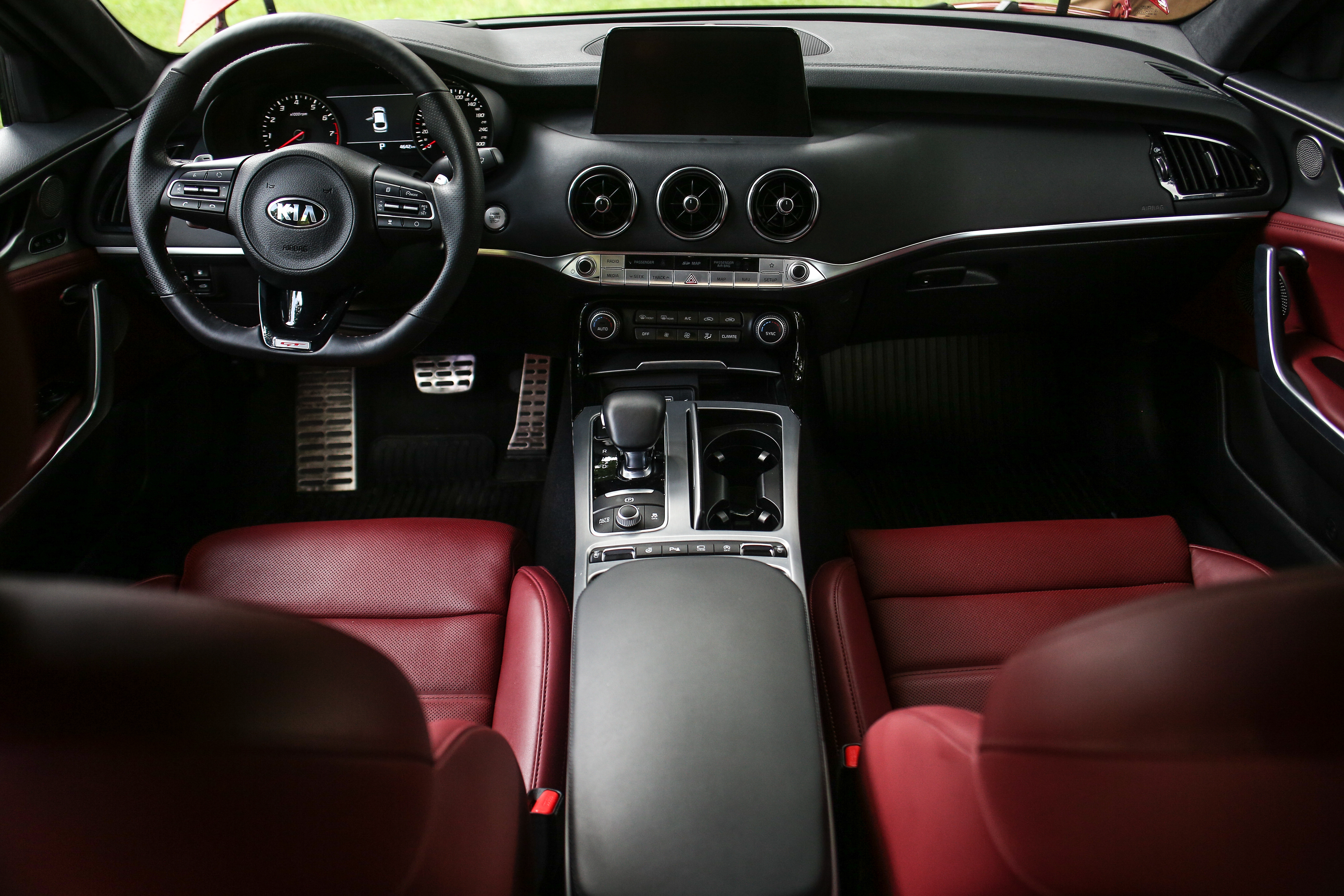 Din scaunul şoferului lucrurile se văd cel mai bine. Stinger are funcţia de apropiere a volanului şi scaunului atunci când te aşezi, asemenea modelelor premium. Scaunele din faţă sunt reglabile electronic, au funcţa de memorie sunt încălzite şi ventilate, iar volanul are ajustare de asemenea electrică, prin intermediul unui mic joystick.